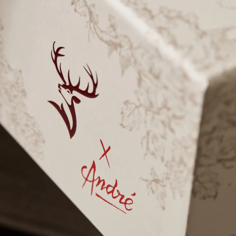 Esta edição especial tem uma embalagem exterior que é inspirada na icónica Toile de Jouy francesa,que funciona como uma tela para o Grand Château. A Glenfiddich estabeleceu uma parceria com André Saraiva